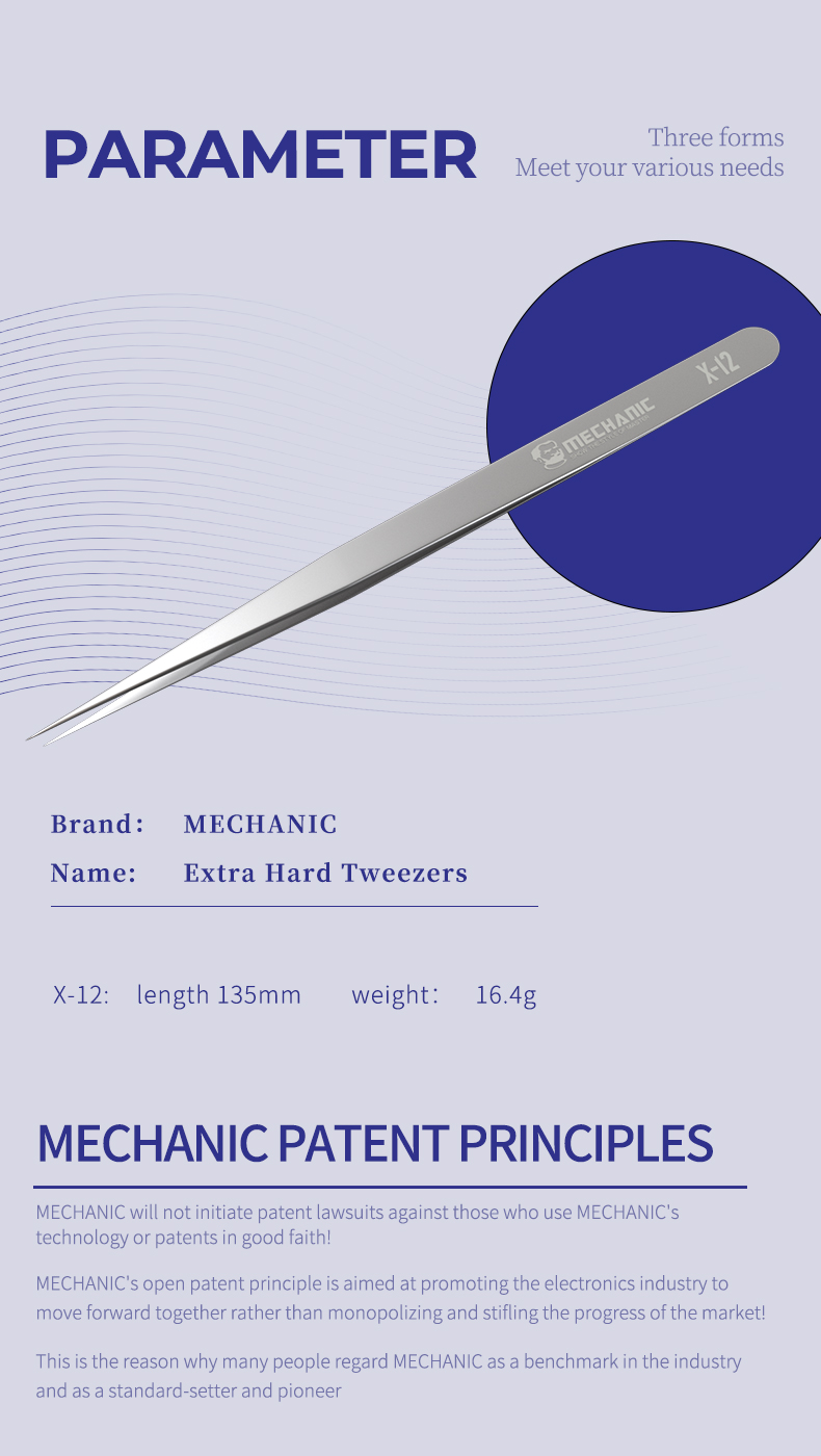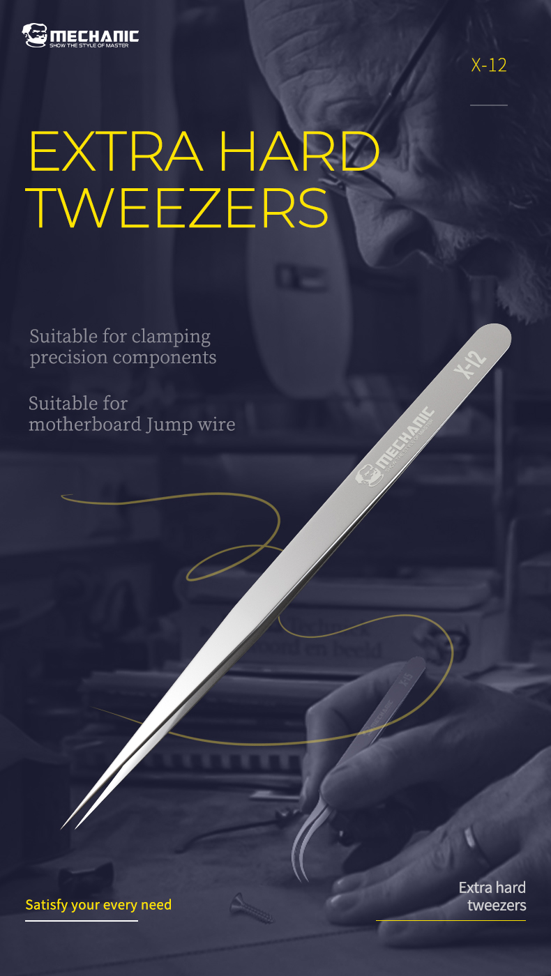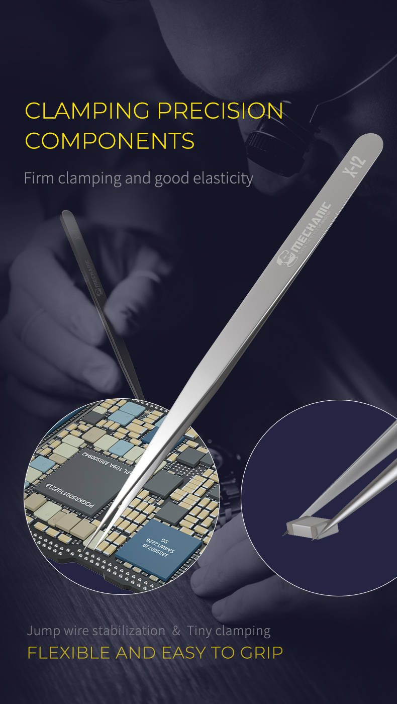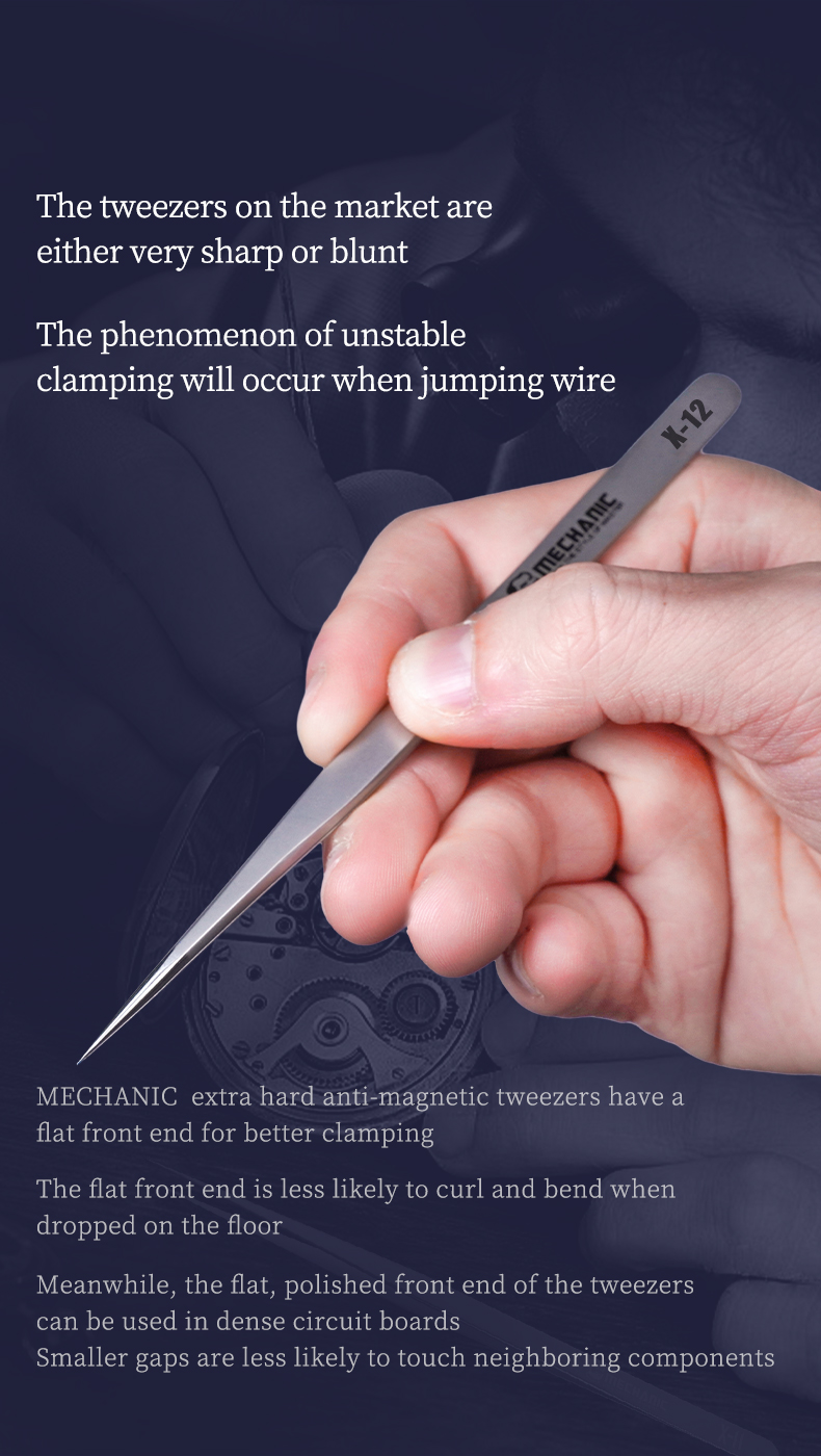 Suitable for clamping precision components and motherboard flying leads, comfortable to hold, light and flexible, extra hard tip, no deformation during clamping