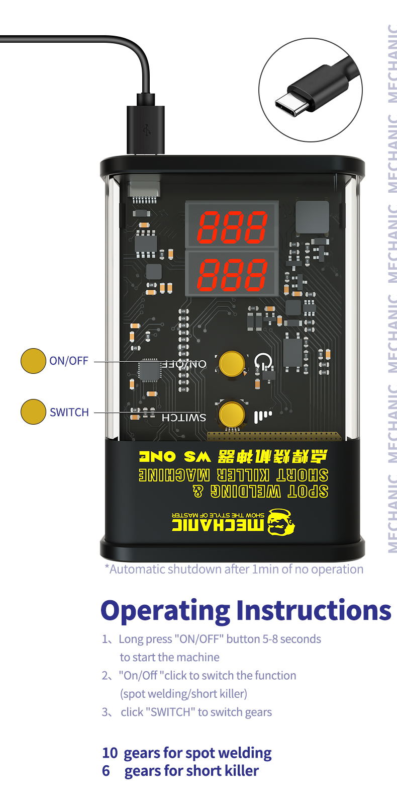 10-speed welding adjustment 6-speed burn-in output